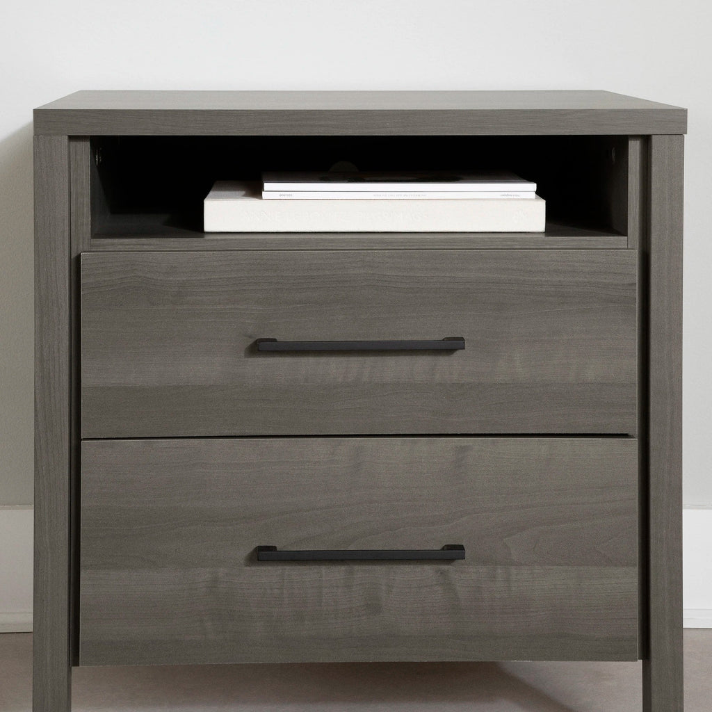 Votre chambre ne serait pas complète sans cet ensemble de 2 tables de chevet au look contemporain. Placées de part et d’autre de votre lit, elles sauront créer une ambiance harmonieuse au sein de votre espace de détente et s’agenceront à merveille avec le mobilier de la même collection. Profitez pleinement de leurs 2 larges tiroirs sur glissières en métal pour organiser efficacement vos sous-vêtements et autres accessoires. Le compartiment ouvert, quant à lui, est idéal pour que vous y déposiez votre livre en cours de lecture.
