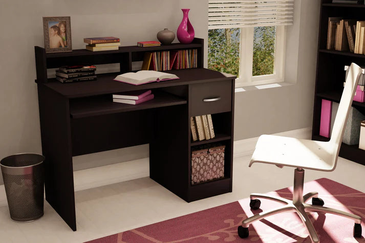 Besoin d'organisation pour votre bureau à domicile? Ce bureau de la collection Axess est parfait pour répondre à tous vos besoins de rangement ! Son design compact comprend tout l'espace nécessaire pour un environnement de travail bien organisé grâce à sa huche, ses deux espaces de rangement ouverts et son tiroir. De plus, la surface de travail est parfaite pour déposer un ordinateur portable. Nous avons même ajouté une tirette pour déposer votre clavier et libérer davantage le dessus.