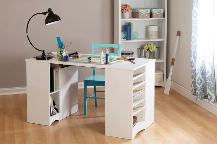 Vous disposerez de suffisamment d'espace pour vous étendre sur ce bureau et pratiquer vos arts et travaux manuels. Bénéficiez de rangement pour tous vos accessoires de couture, d'artisanat ou de fabrication de bijoux. Avec une combinaison d'étagères, d'armoires ajustables et d'un tiroir central, vous ne manquerez jamais d’espace pour ranger vos articles essentiels.