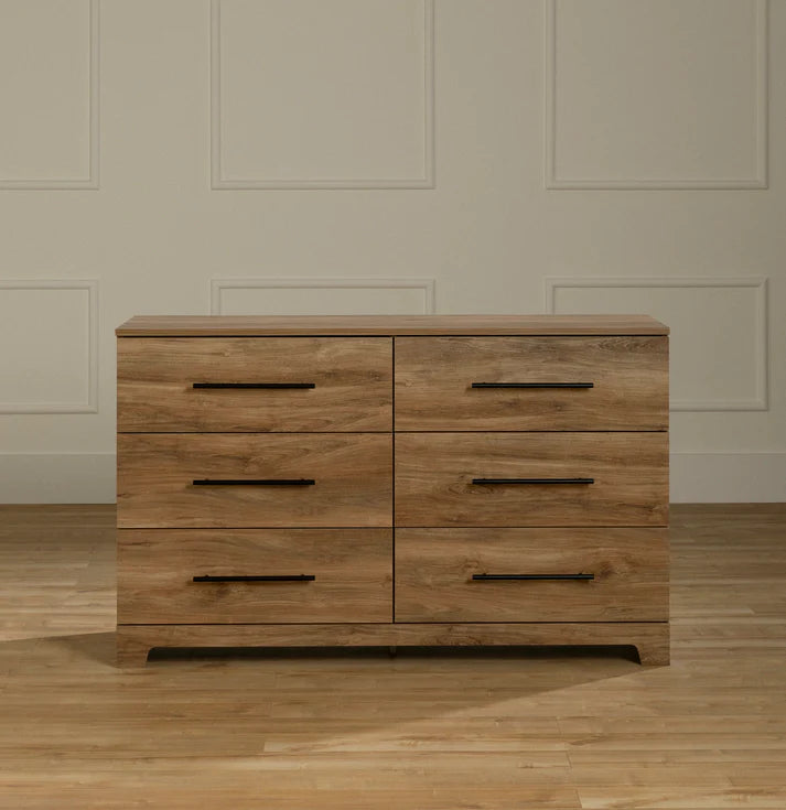Pensée pour optimiser les petits espaces, cette commode intègre de vastes tiroirs pour un rangement efficace. Grâce à ses six tiroirs profonds, elle propose un espace conséquent pour ranger vêtements et literie et vous permet de conserver une pièce des plus ordonnées. Ses glissières de métal assurent une ouverture et une fermeture fluides, tout en facilitant l'accès à vos effets personnels.