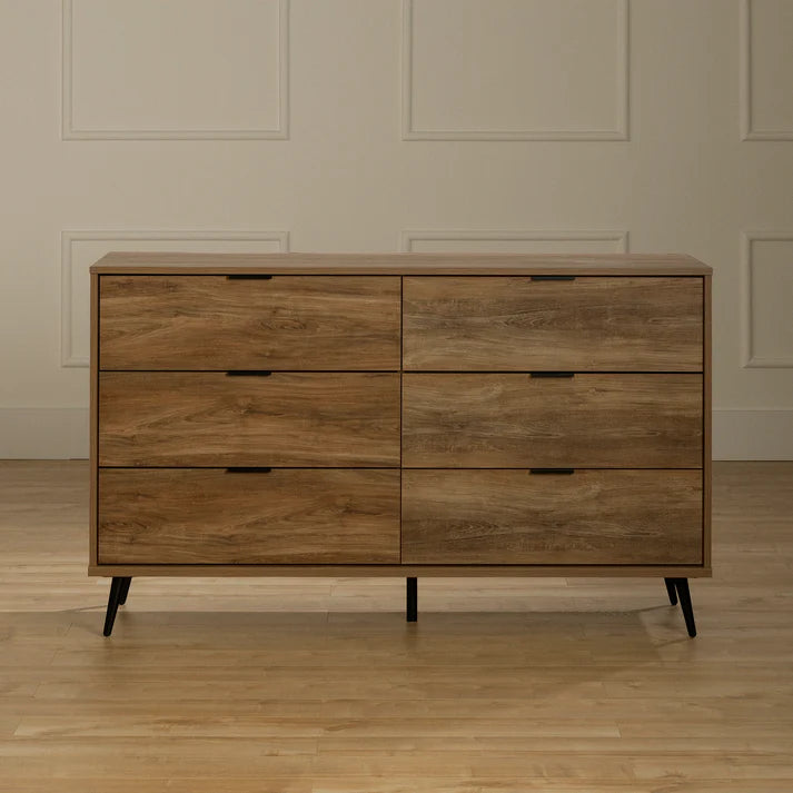 Cette commode est parfaite pour garder vos vêtements bien rangés et accessibles. Avec six tiroirs spacieux, vous aurez suffisamment de place pour tout, des chandails et pantalons aux accessoires et literie. De plus, ses glissières métalliques permettent une ouverture et une fermeture fluides, facilitant l'accès à vos effets personnels.