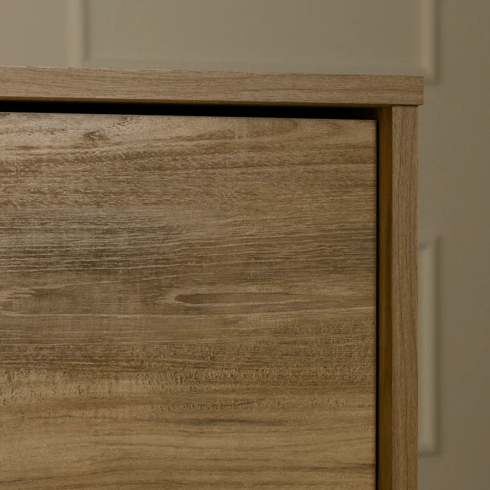 La commode 6 tiroirs Oxford apportera une touche d'élégance contemporaine incomparable à votre chambre. Avec ses lignes épurées et ses poignées en métal, elle combine style et praticité pour un espace de détente organisé et esthétique.
