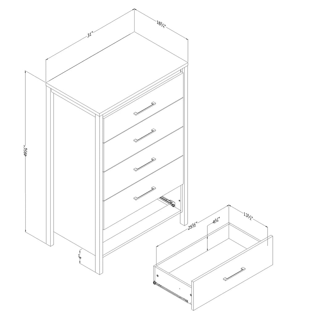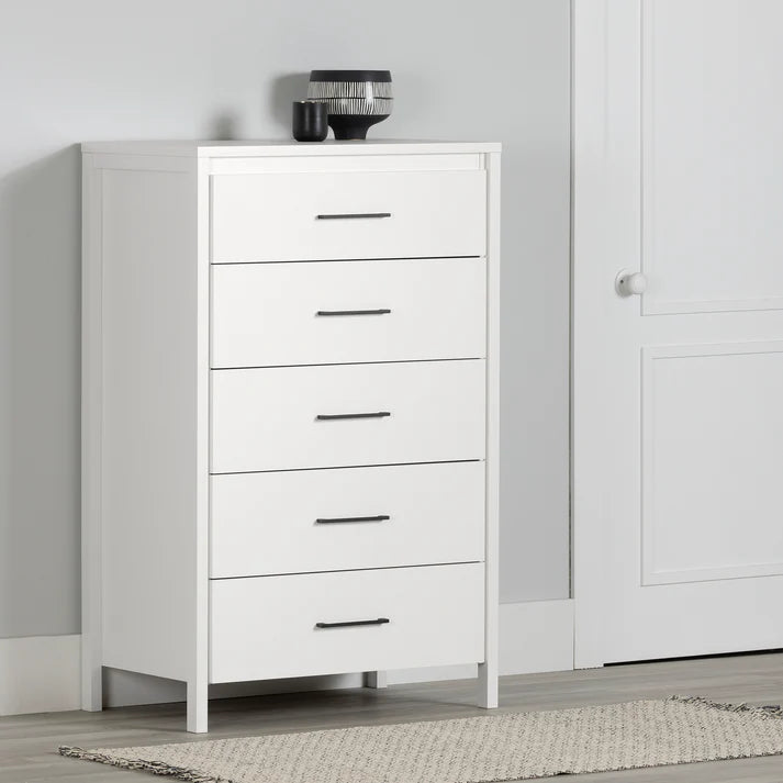 Cette commode est la solution de rangement idéale pour les pièces de petite dimension! Elle contient cinq grands tiroirs qui vous permettront d’organiser à votre façon tous vos vêtements et accessoires. Et comme elle est faite en hauteur, elle n’encombrera pas votre chambre. Vous aurez une pièce aérée, propre et bien rangée.