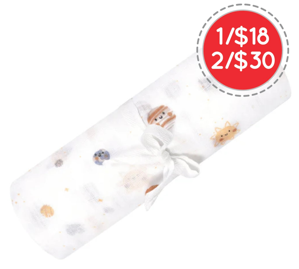 Couverture d'emmaillotage de mousseline 100% coton. Pré-lavée, ultra légère et fabriquée à partir d'un tissu léger, cette couverture multi-usages en mousseline permet à l’air de circuler de façon optimale !