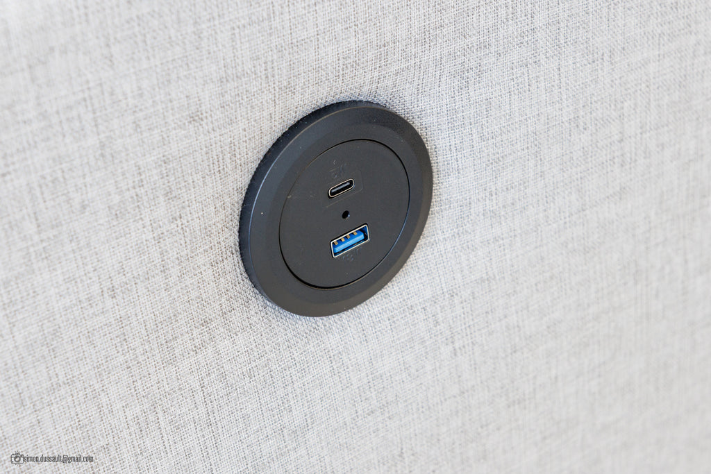 It has a USB port, allowing you to charge your phone or other electronic items in the comfort of your chair.