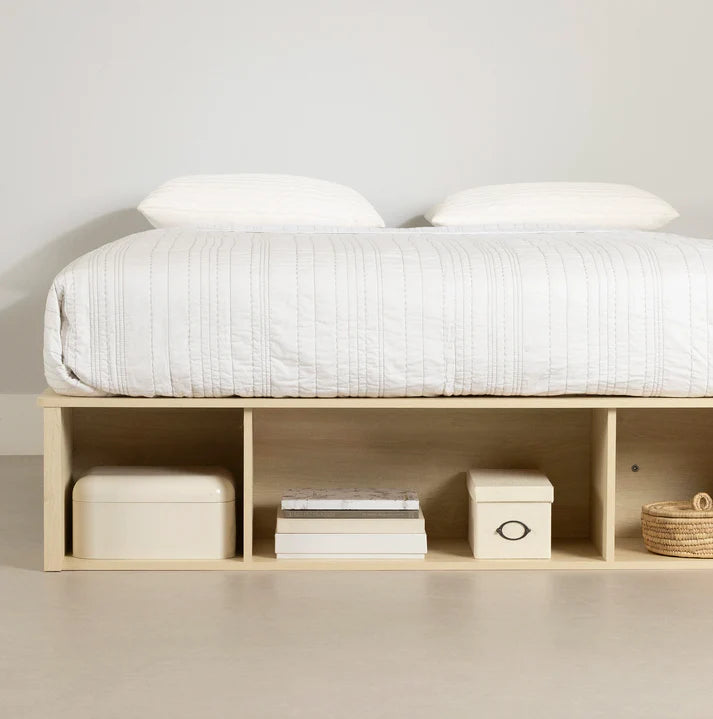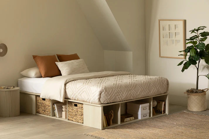 Ce lit avec plusieurs espaces de rangement est inusité et ingénieux! Il offre plusieurs casiers ouverts sur 3 côtés du lit. L’espace sous le lit estvaste: vous pouvez y serrer des livres, draps et accessoires.