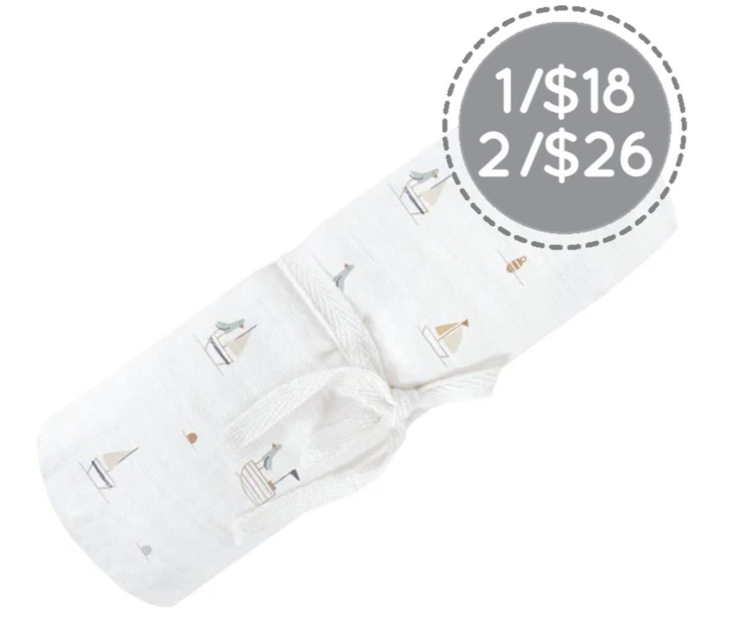 Composition : Mousseline légère et respirante : 100% coton. Mesure 48" x 48".