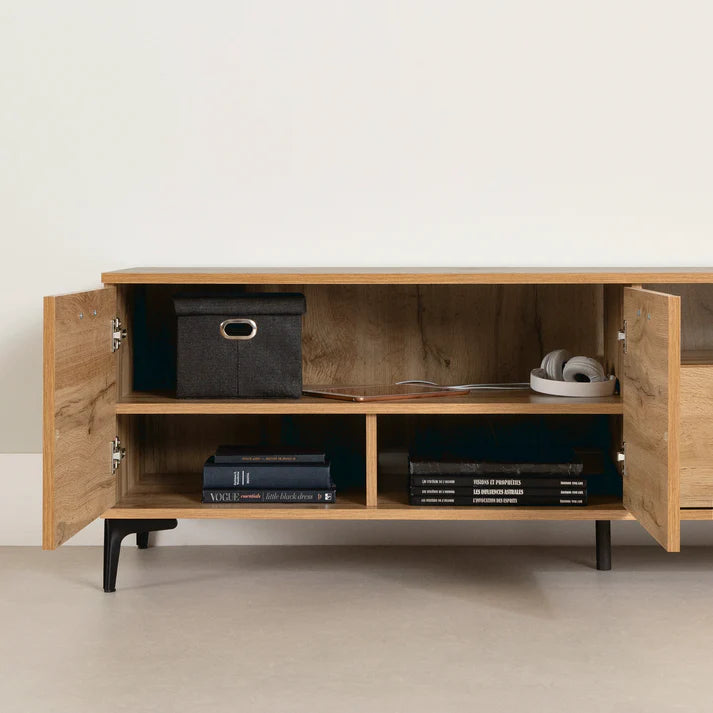 Meuble TV avec portes et tiroir Musano - Chêne nordique