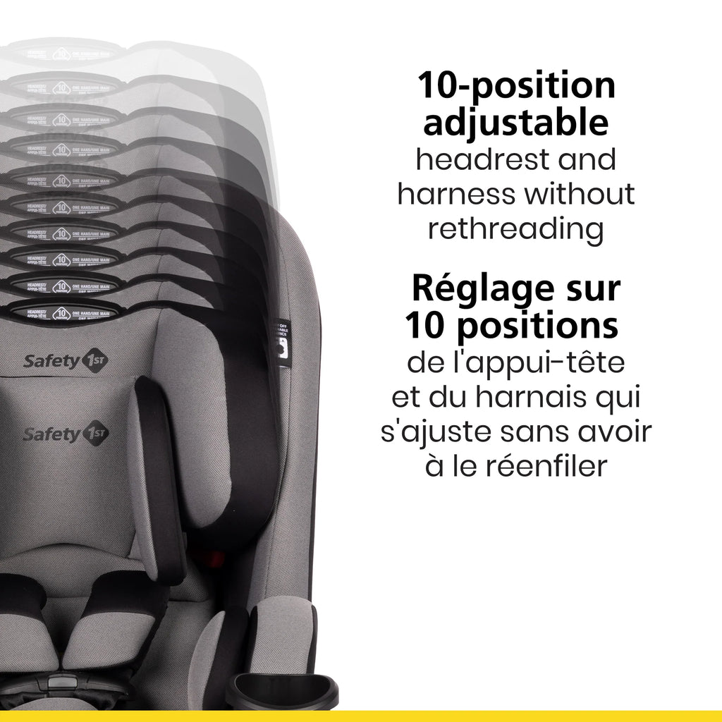 Le siège d'auto convertible tout-en-un EverSlim de Safety 1st assure la sécurité et le confort de votre enfant à tous les âges et à toutes les étapes, avec 4 modes d'utilisation : face vers l'arrière (5 à 40 lb, 19 à 40 pouces), face vers l'avant (22 à 65 lb, 29" à 49"), rehausseur de positionnement de ceinture (40 à 100 lb, 43" à 52") et rehausseur sans dossier (40 à 100 lb, 43" à 57"). Le design ultra fin du siège s'adapte à 3 personnes sur la plupart des sièges arrière sans sacrifier le confort. L'indicateur rouge à vert SecureTech™ sur le clip de poitrine vous permet de voir quand le clip de poitrine de votre enfant est solidement fixé. Avec une base réglable à 5 positions d'inclinaison, un appui-tête réglable à 1 main sur 10 positions, un rehausseur sans dossier facile à convertir et un tissu lavable et séchable en machine, c'est le seul siège d'auto dont votre enfant aura besoin, de la naissance à l'âge. dix.