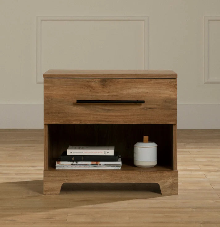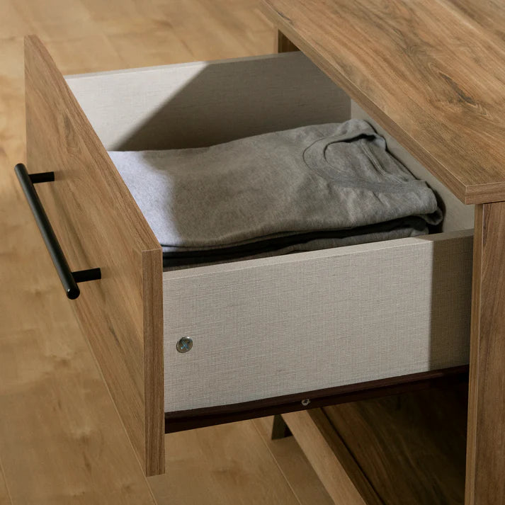 Cette table de nuit est idéale pour ceux qui cherchent à combiner accessibilité et style. Avec son espace ouvert parfait pour les livres et un tiroir équipé de glissières en métal pour un usage fluide, elle simplifie le rangement de vos effets personnels. Le compartiment ouvert est idéal pour garder à portée de main les petits objets, tandis que le tiroir permet de cacher discrètement les essentiels et accessoires.