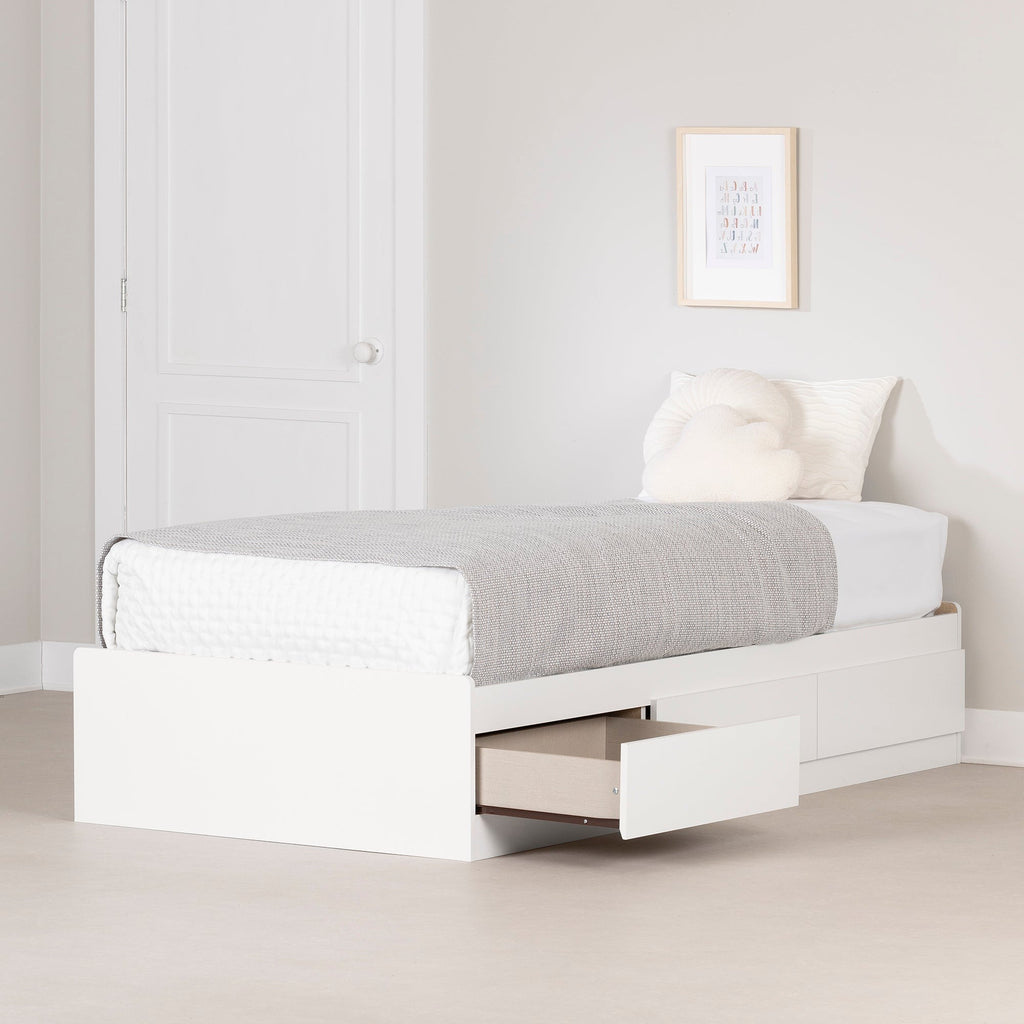 Cette superbe base de lit vous offre du rangement additionnel avec sa configuration ingénieuse. Les trois tiroirs sous la plateforme seront parfaits pour ranger des jouets, des cahiers de dessins, des vêtements et de la literie. Le design réversible de ce lit vous permettra de placer ces espaces de rangement du côté le plus accessible. C’est exactement ce qu’il vous faut pour encourager votre jeune à garder sa chambre à l’ordre!
